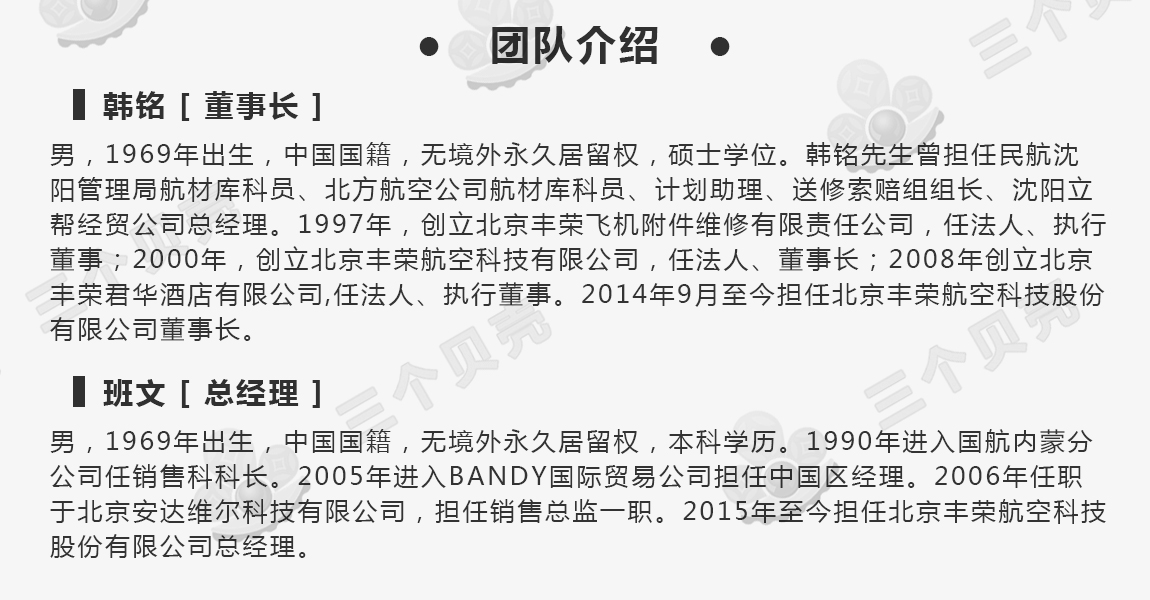 丰荣航空科技股份有限公司成立于2000年9月,位于首都机场临空经济核心区,是国家级高新技术企业。主要从事飞机零部件维修、航空支援和通用航空服务。